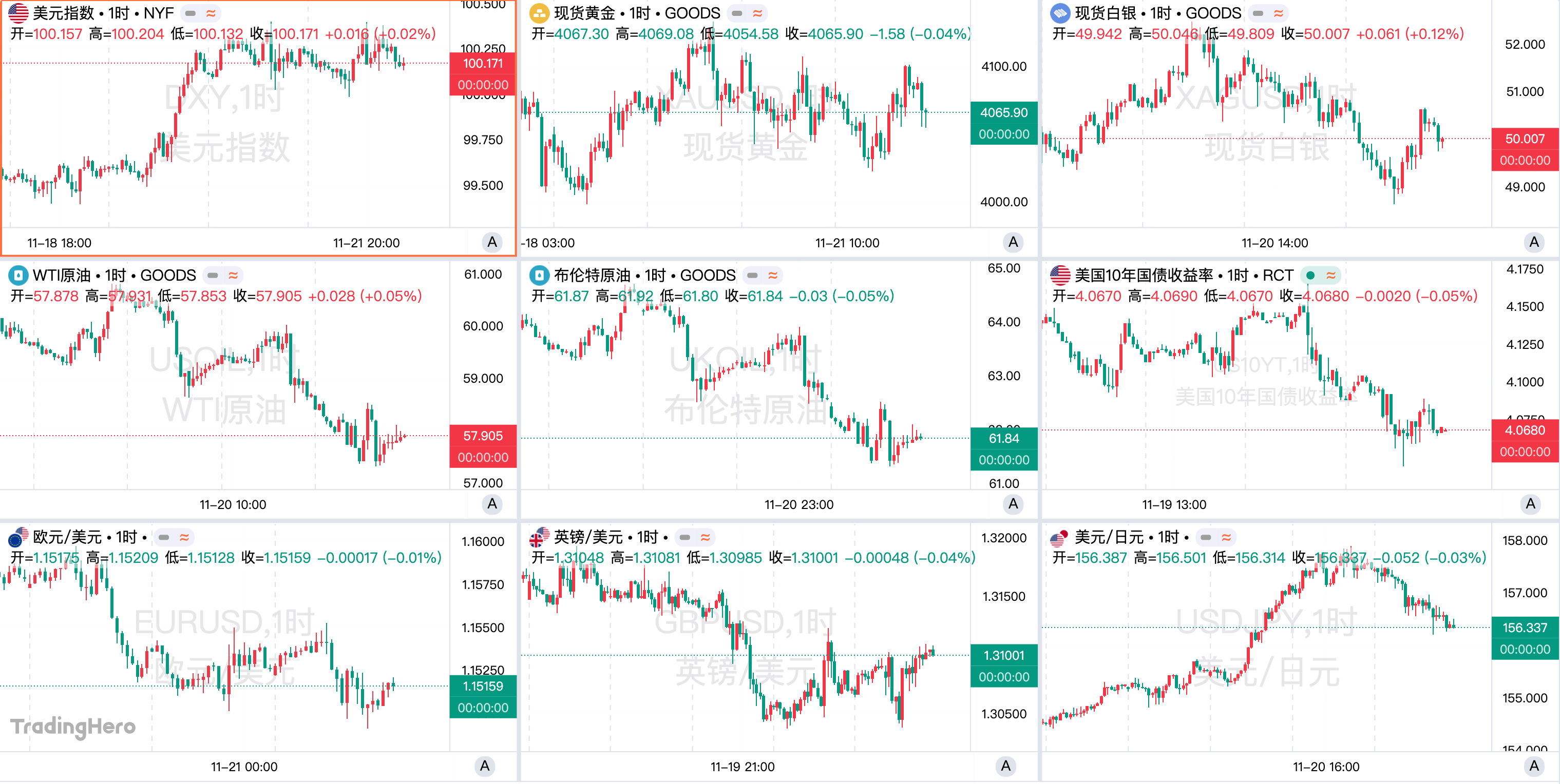 美元指数本周整体走强,四天连涨、一度上破100关口并创近两周新高,周五收于100.17,周内涨0.91%。驱动因素主要是美联储12月降息预期降温、避险情绪升温以及就业数据喜忧参半带来的政策不确定性。
