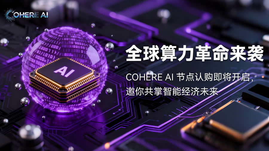 当AI浪潮席卷全球,当区块链重构产业根基,COHERE AI——这个由加拿大Cohere公司重磅打造的全球领先AI+区块链算力与通信生态平台,正以无可匹敌的实力,开启智能经济的全新篇章。如今,万众瞩目的节点认购即将启动,一场关乎未来的财富与机遇盛宴,邀你入局!